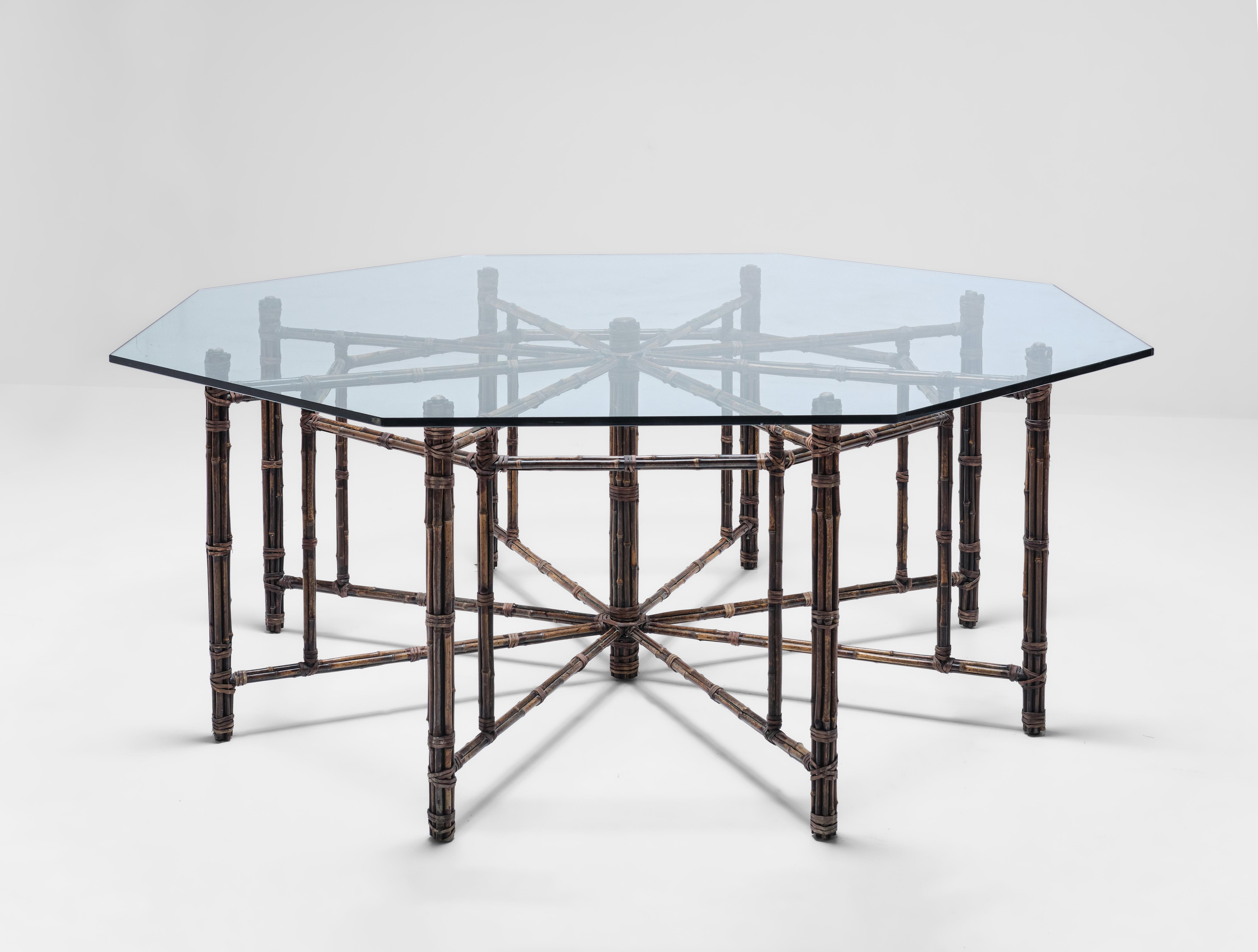 Struttura in metallo con rivestimenti in bambù e piano in vetro.