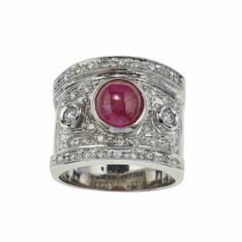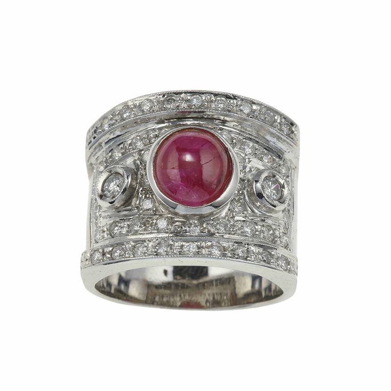 Cabochon ruby and diamond ring