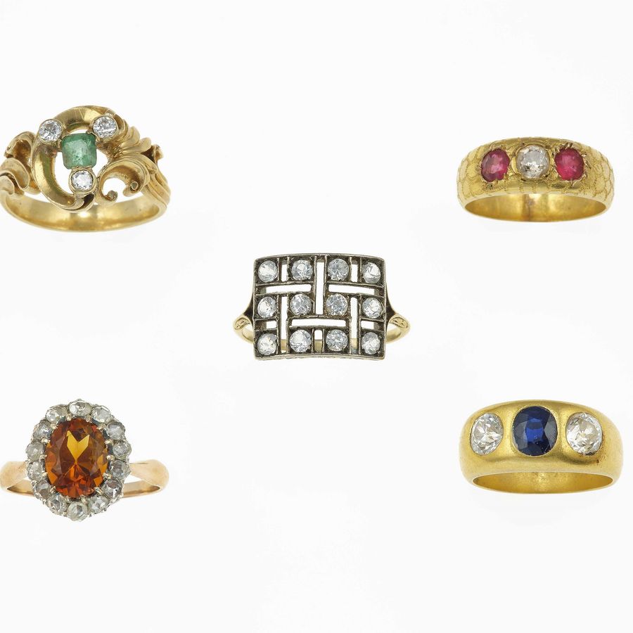 Five diamonds and jem-set rings