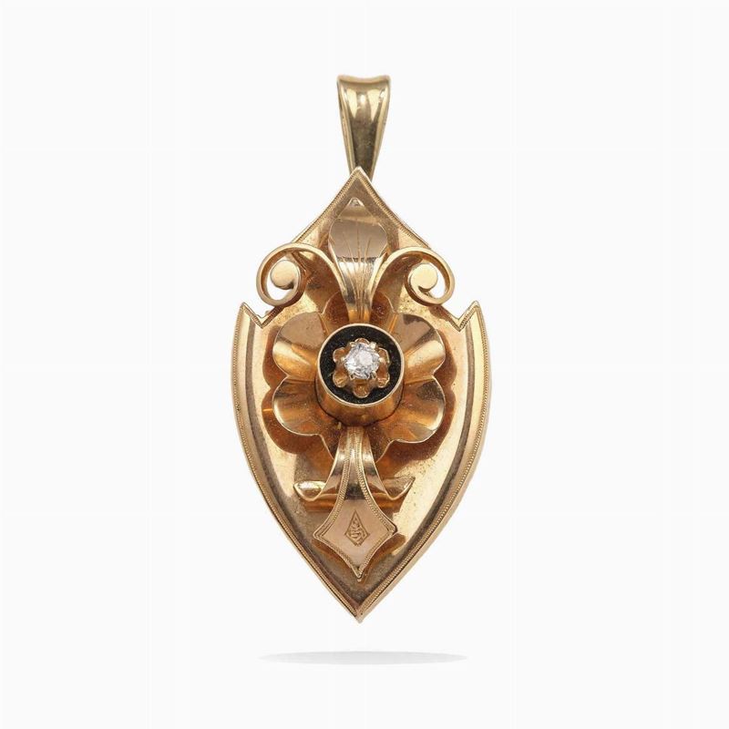 Pendant / Brooch gr. 8,2 cm 5,2 x 2,1 (18kt yellow and low carats gold)