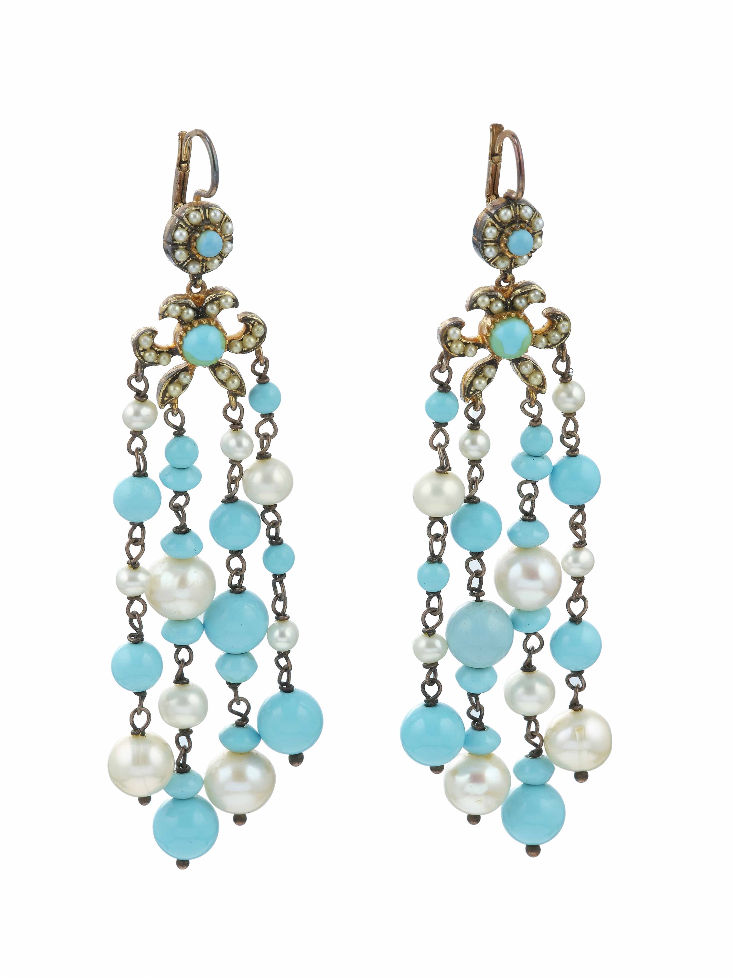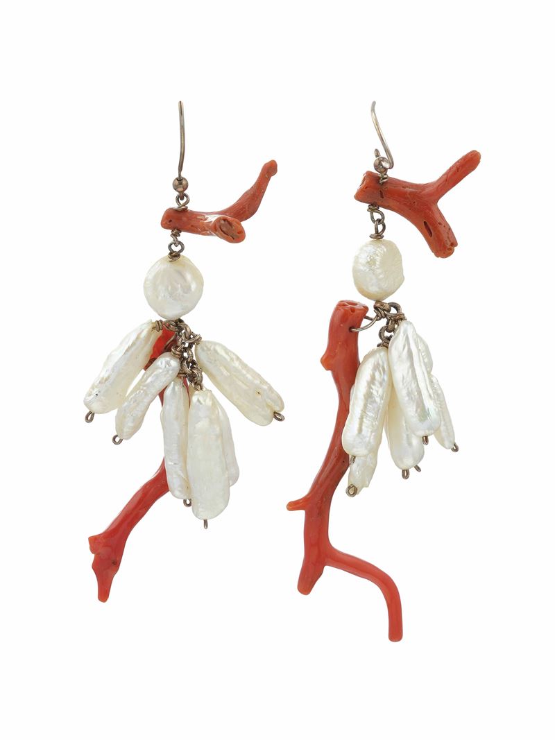 Three pair of coral, hardstones and jem-set earrings