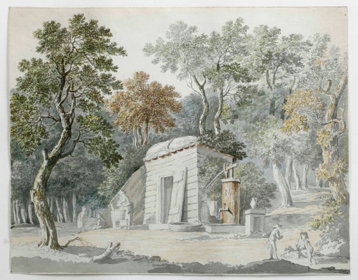 Scuola della fine del XVIII secolo Paesaggio con personaggi