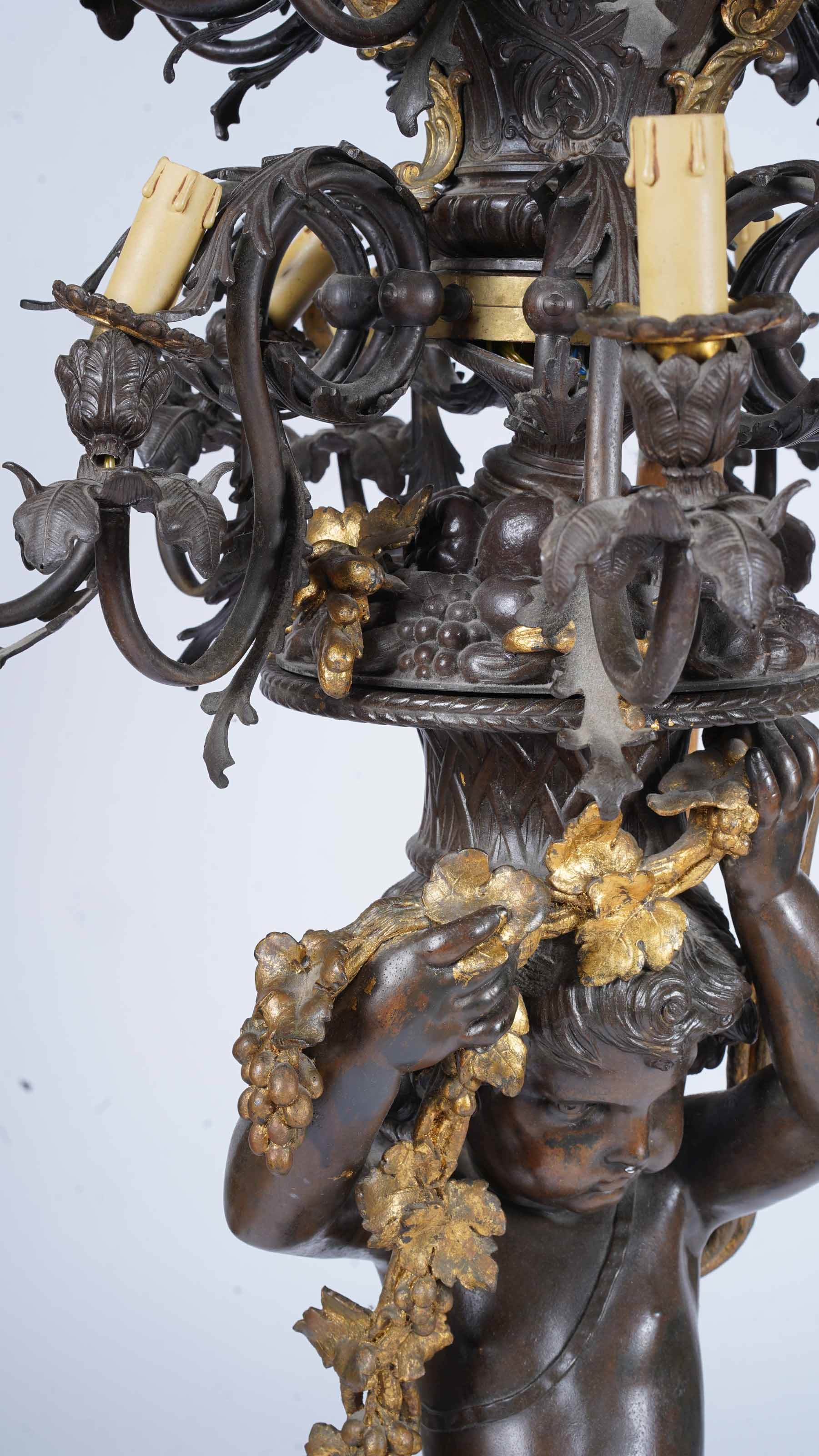 Grande candelabro in bronzo patinato. XX secolo