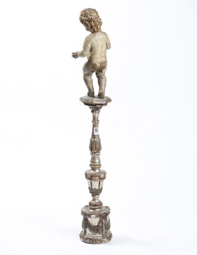 Putto su base intagliata. XIX-XX secolo