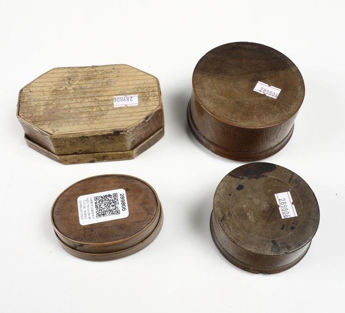 Quattro antiche scatoline in legno, tra cui una del XVIII secolo