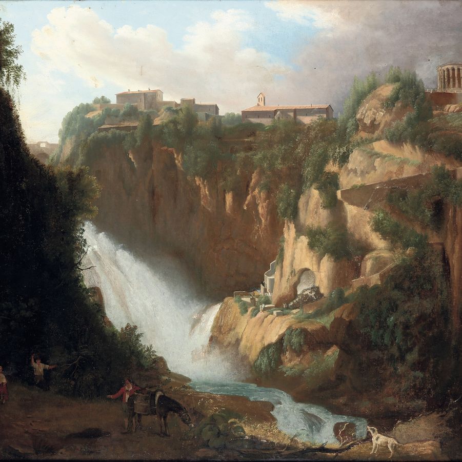 Vedute con le cascate di Tivoli e il Tempio di Vesta