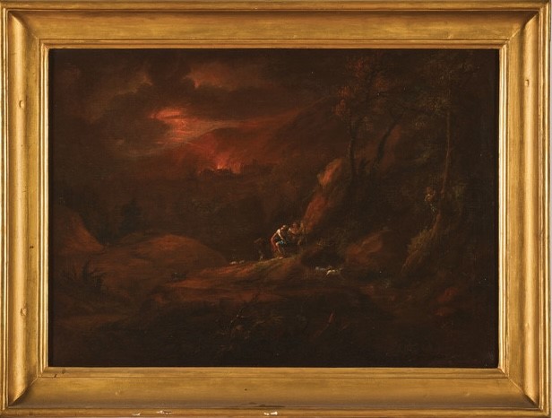 Scuola del XVIII secolo L'assalto alla diligenza Notturno con incendio