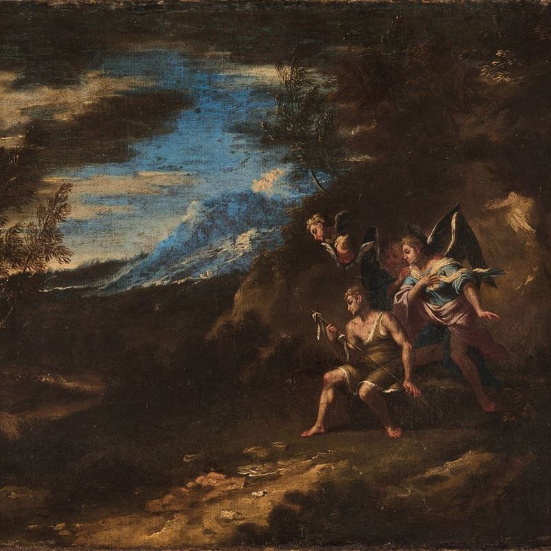 Scuola napoletana del XVIII secolo Paesaggi con episodi sacri