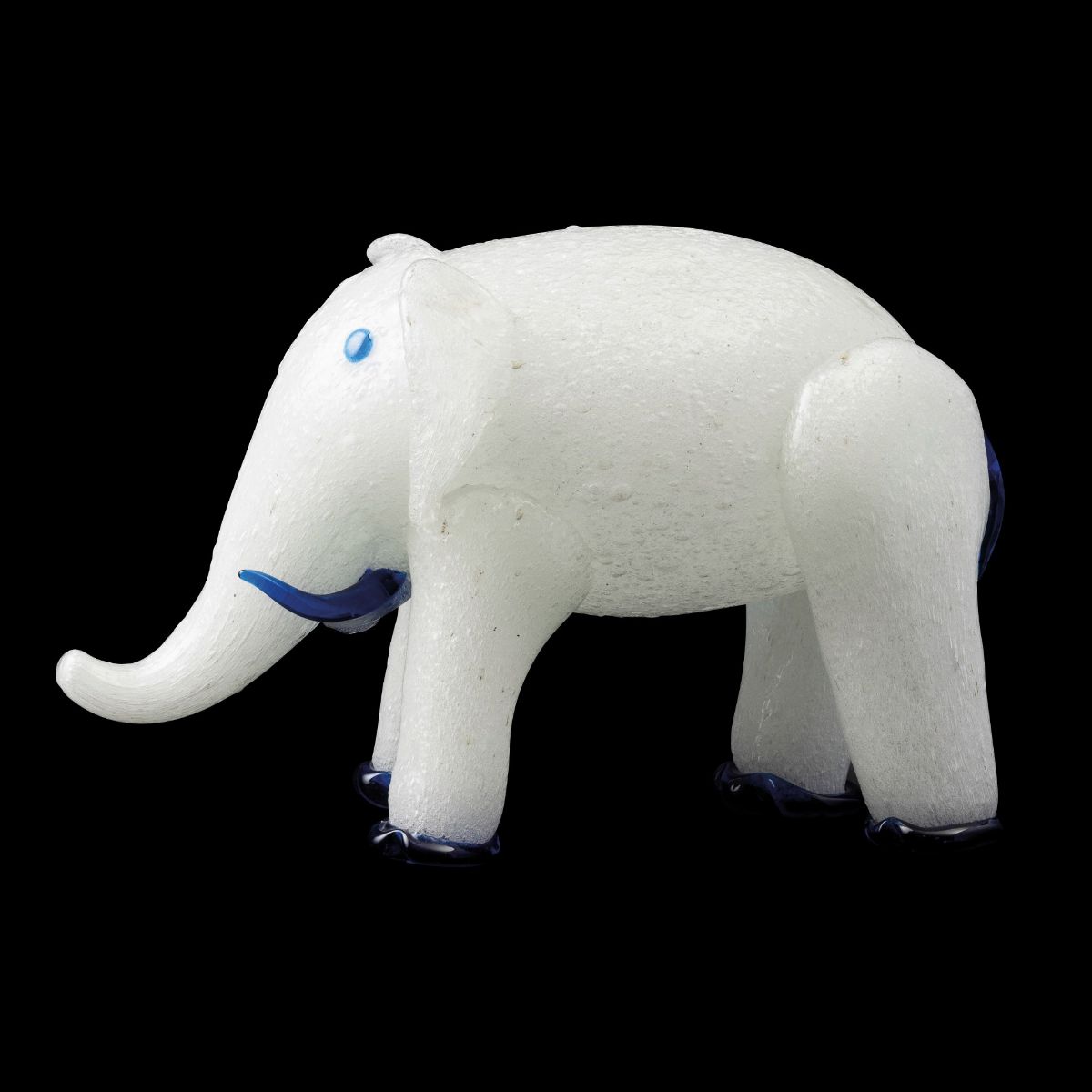 Rare white pulegoso glass sculpture in the shape of an elephant.