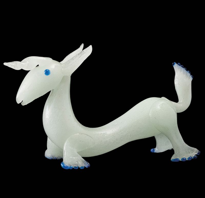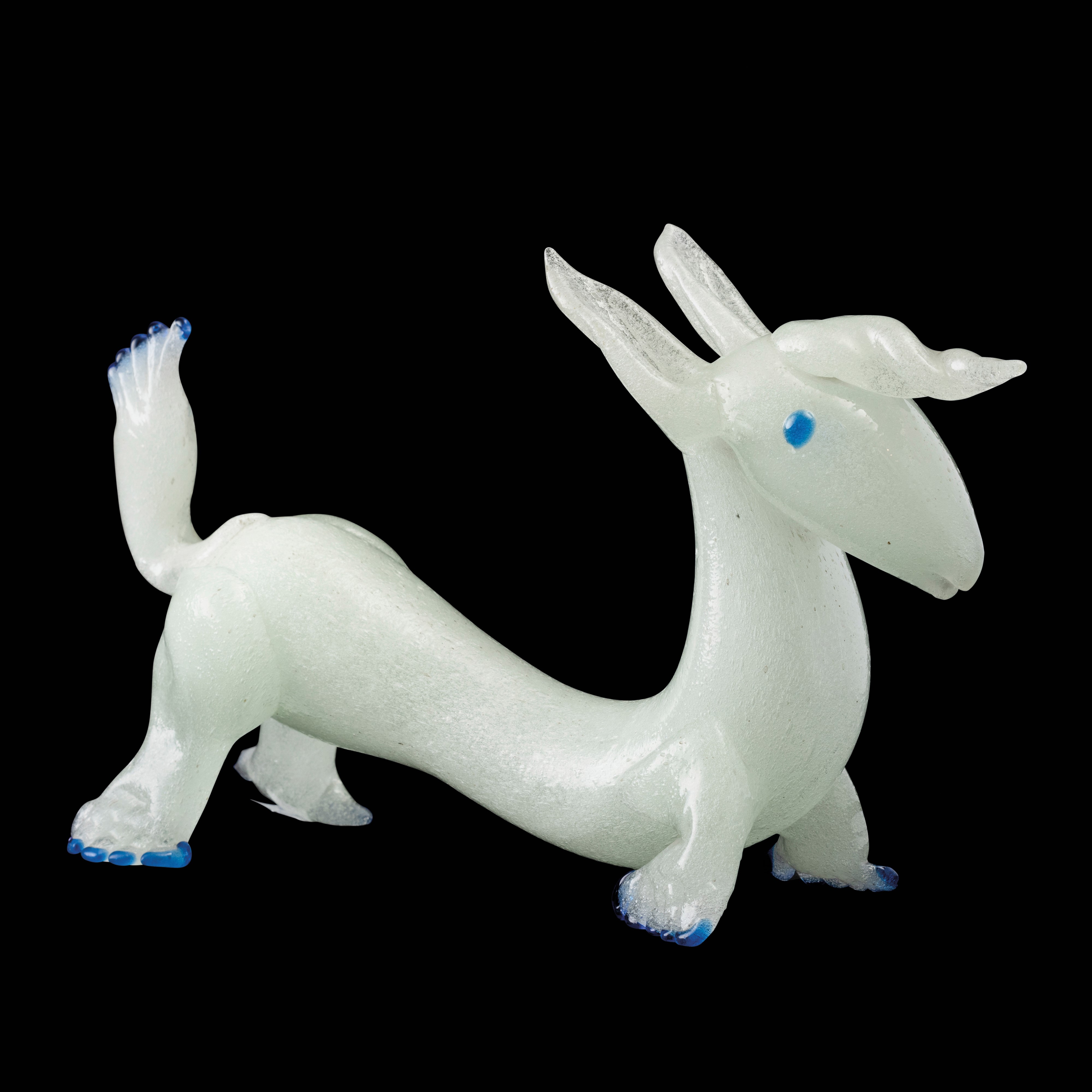 Rare white pulegoso glass sculpture in the shape of a unicorn.