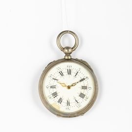 Orologio da tasca anonimo del 1880 circa con cassa in argento, movimento con scappamento ad ancora, quadrante in smalto bianco