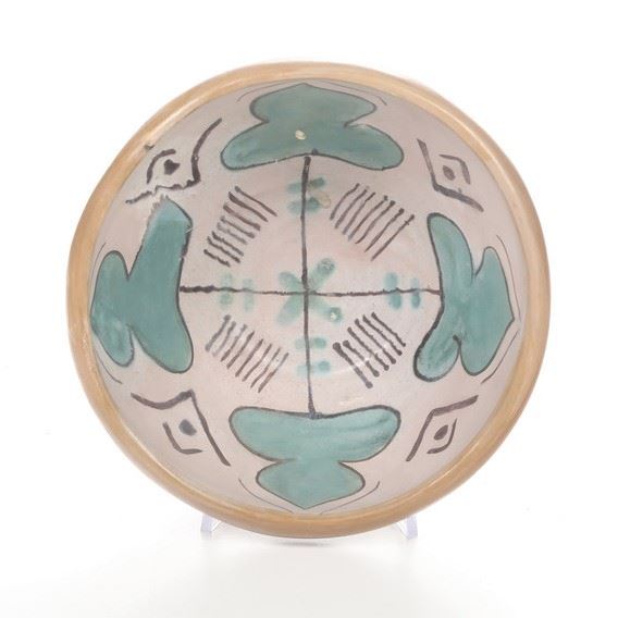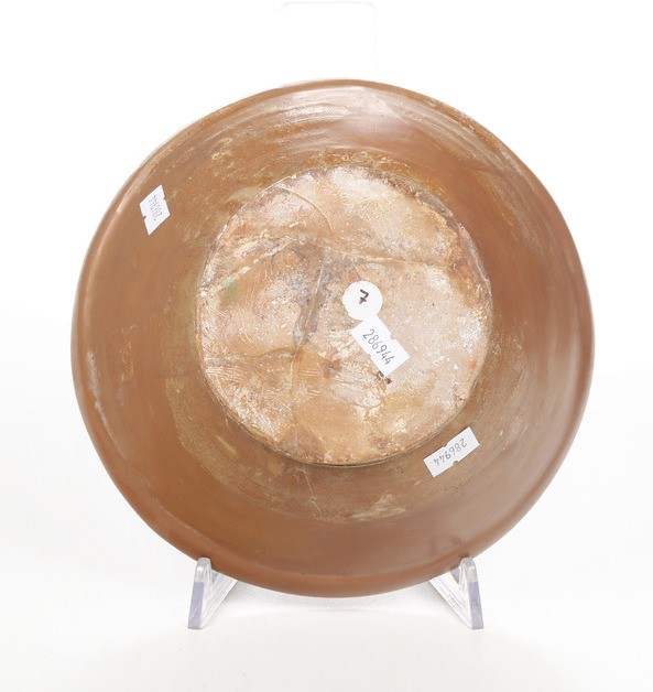 Maiolica arcaica. Dimensioni: altezza cm 10,5; diametro cm 20,5. Conservazione: rotta in più frammenti e ricomposta in restauro; integrazioni.