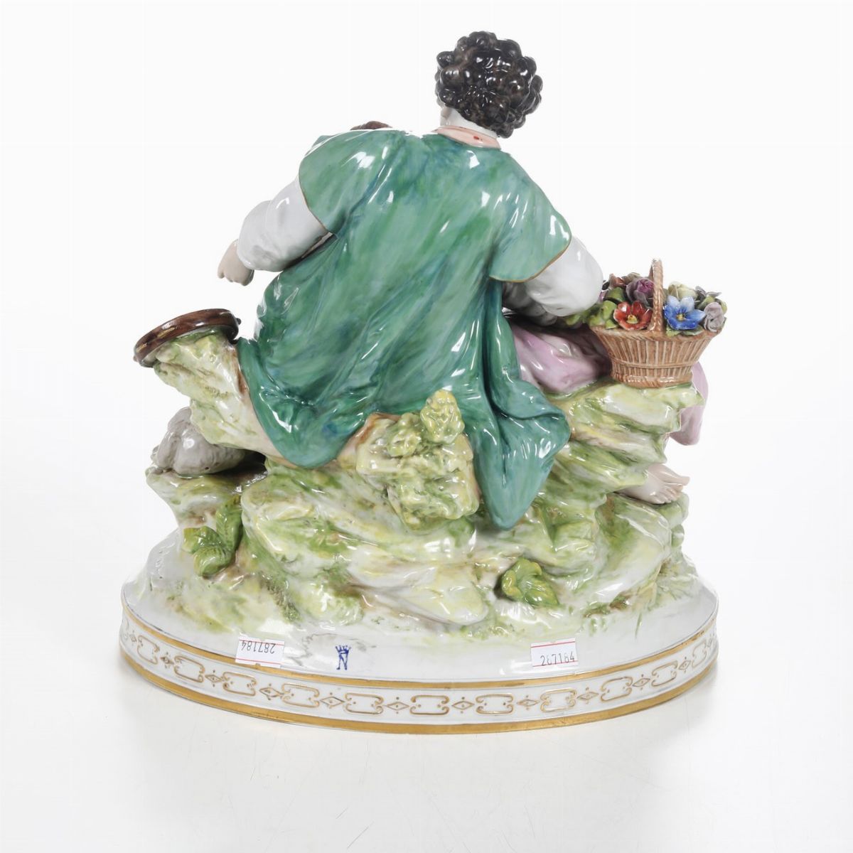 Gruppo con scena di innamorati. Germania, Turingia, Manifattura di Rudolstadt, XX secolo.