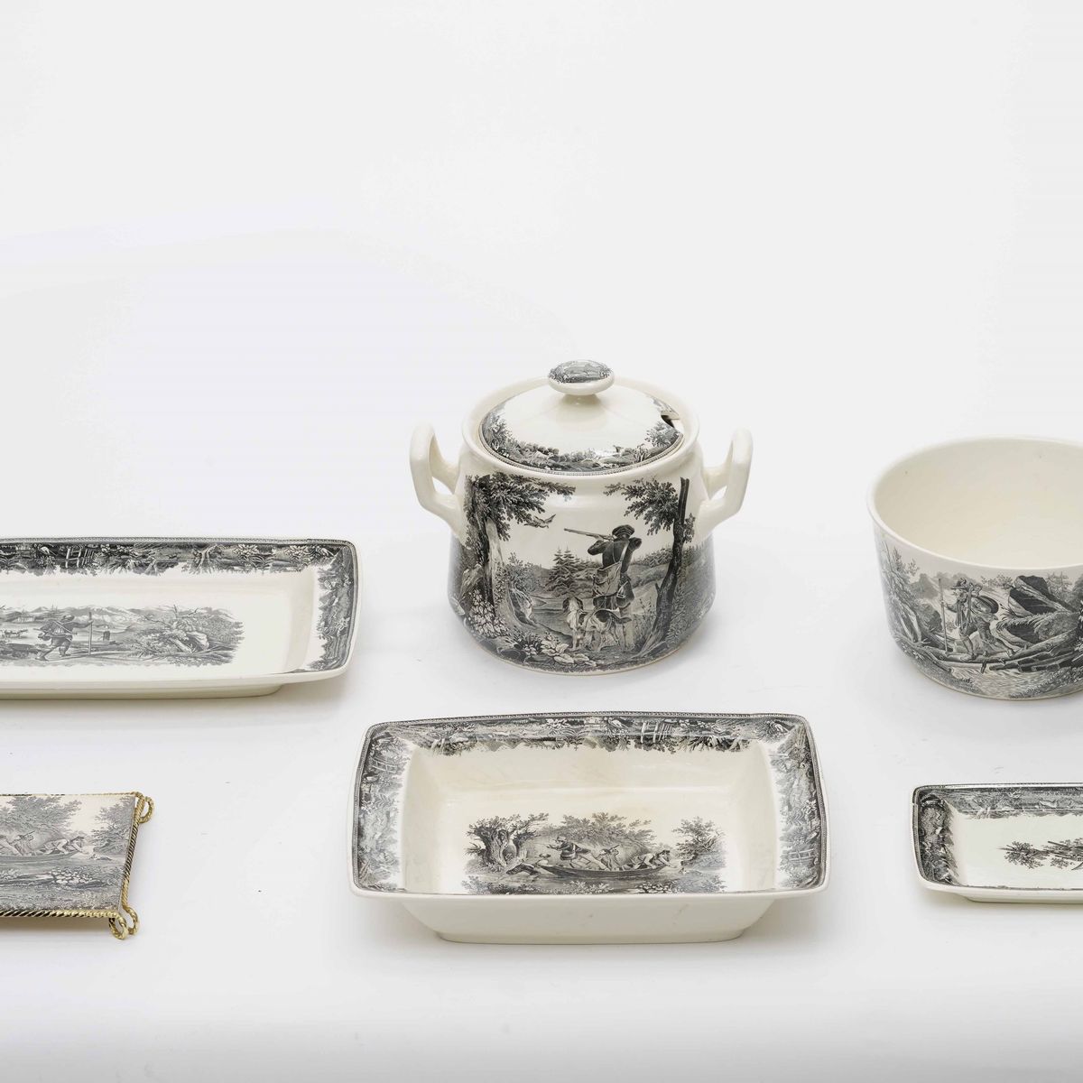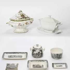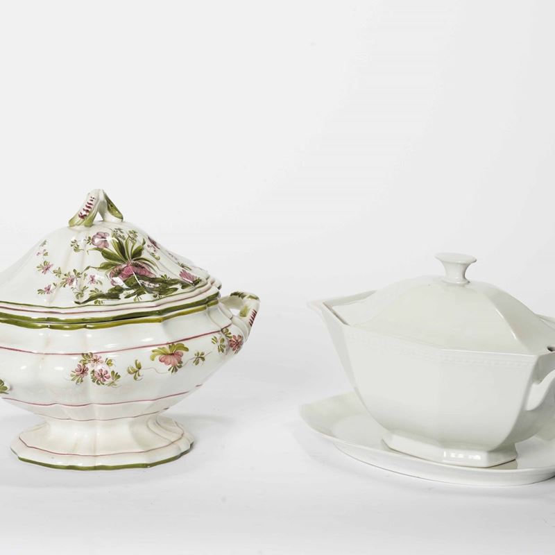 Terraglia, porcellana e maiolica. Dimensioni: minima cm 21X14; massima cm 40X30X30. Conservazione: ottima. Totale 8 pezzi.