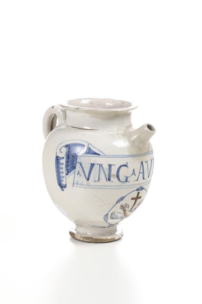 Maiolica. Altezza cm 19. Conservazione: beccuccio completamente restaurato; piccolo restauro alla bocca.