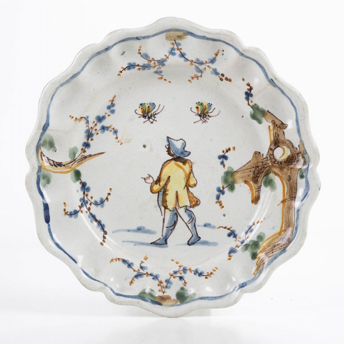 Maiolica. Marca: lanterna in ocra. Diametro: cm 23,5. Conservazione: ottima; insignificanti sbeccature al bordo