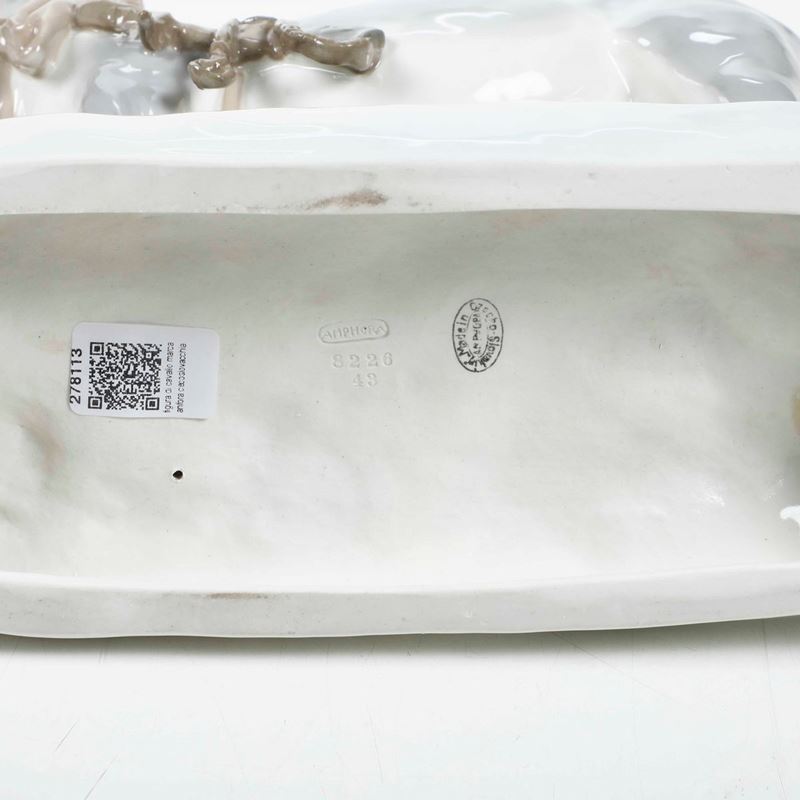 Porcellana policroma. Marca: “Amphora" impresso. Dimensioni: altezza cm 33,2; 32x14. Conservazione: insignificanti felature allo smalto.