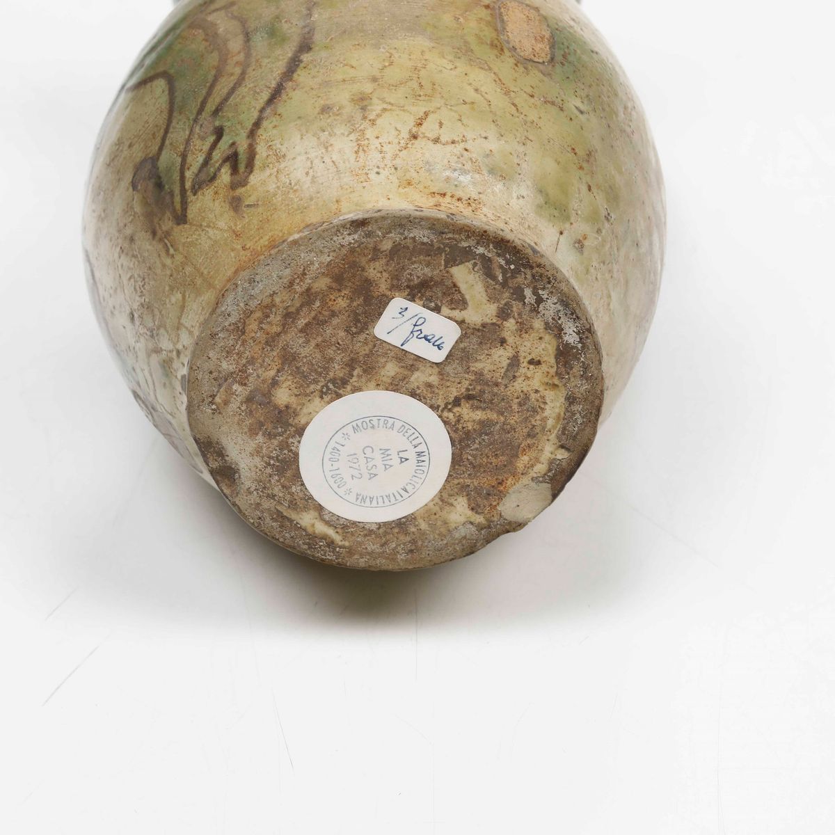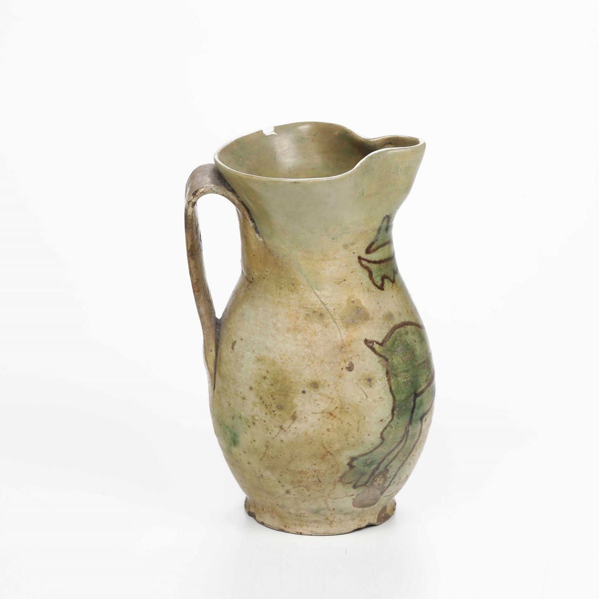 Maiolica decorata in verde e manganese. Altezza cm 21. Conservazione: collo e bordo superiore con integrazioni.