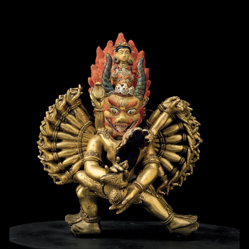 A gilt bronze Yamantaka, Tibet, 16/1700s
