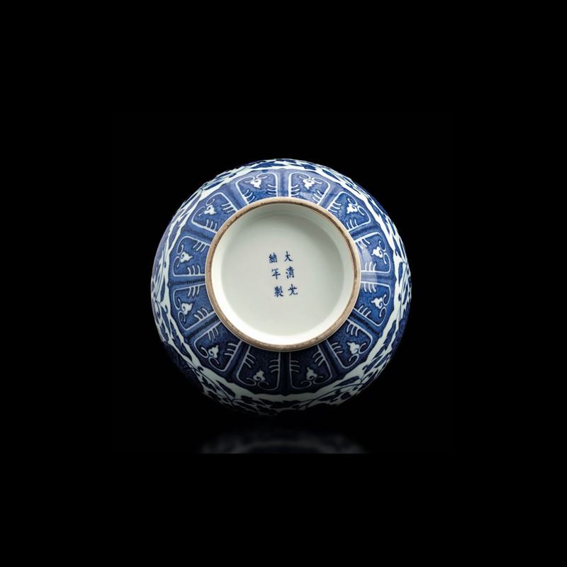 Guangxu period (1875-1908). Blue and white porcelain with a floral decor.