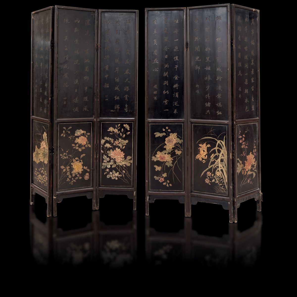 Qing Dynasty. With everyday life scenes and floral decors, large inscriptions on the back.