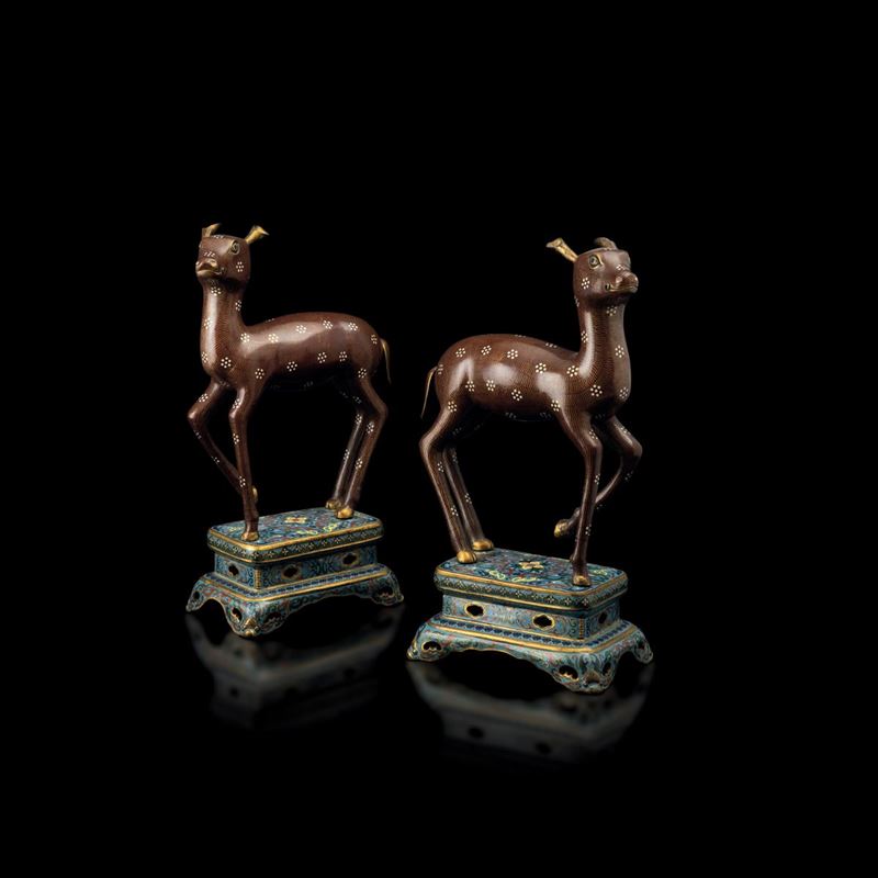 Two cloisonné deer, China, Qing Dynasty