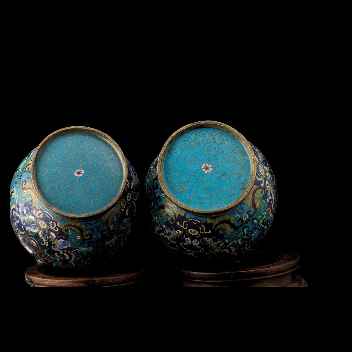Guangxu period (1875-1908). Pho dogs on a blue backdrop.
