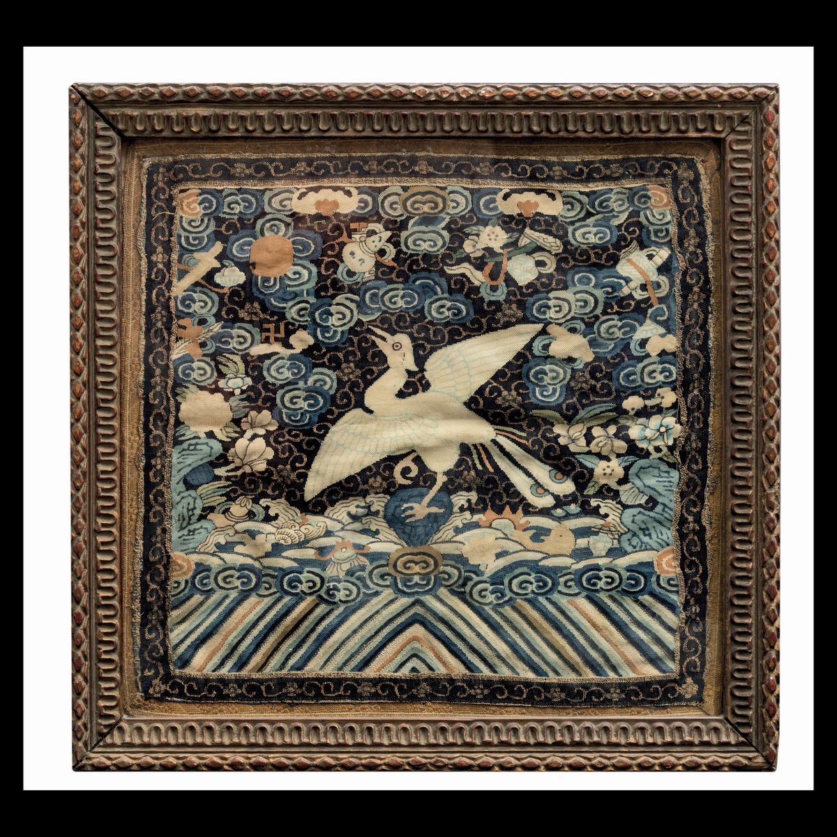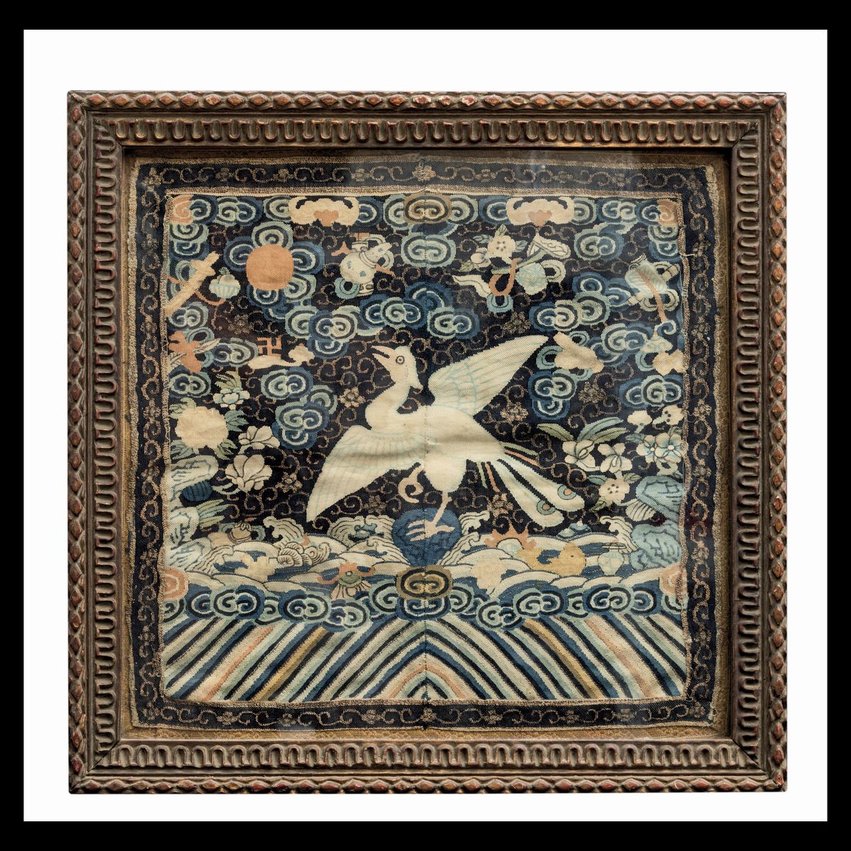 Two silver-embroidered fabrics, China, Qing Dynasty