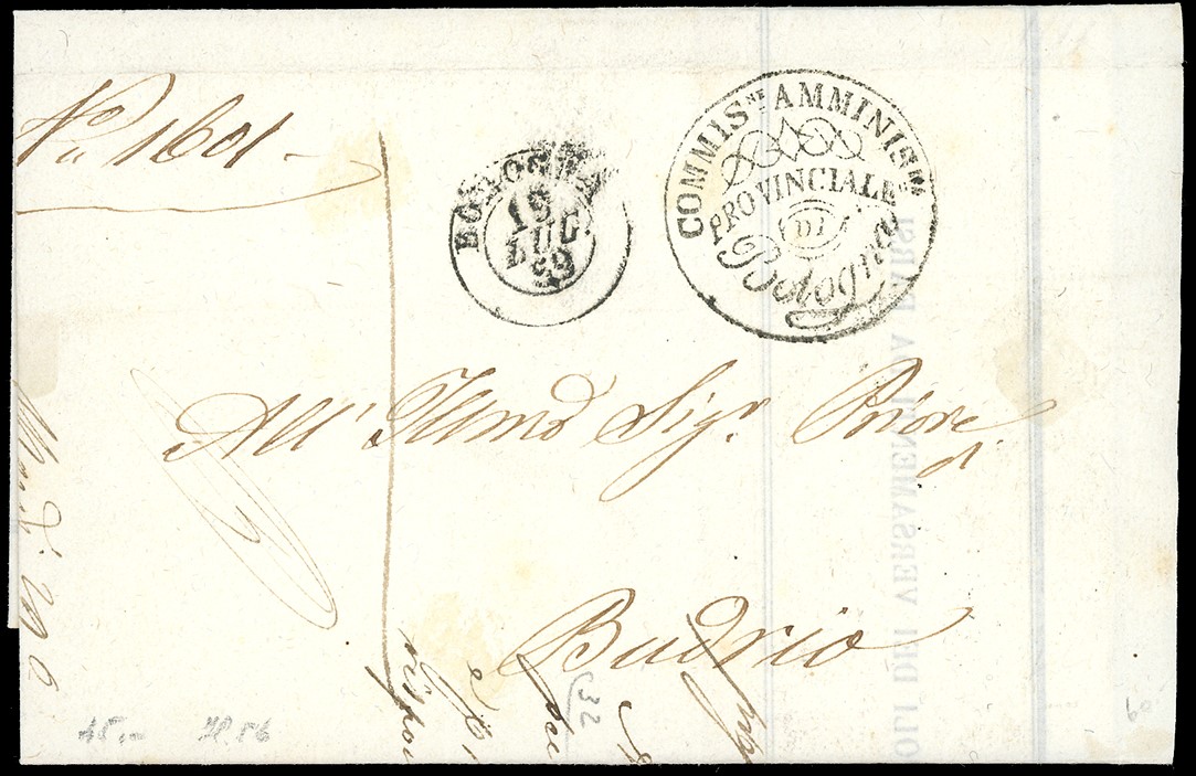 1859, Romagna, Governo Provvisorio, lettera da Bologna per Budrio del 19 luglio 1859