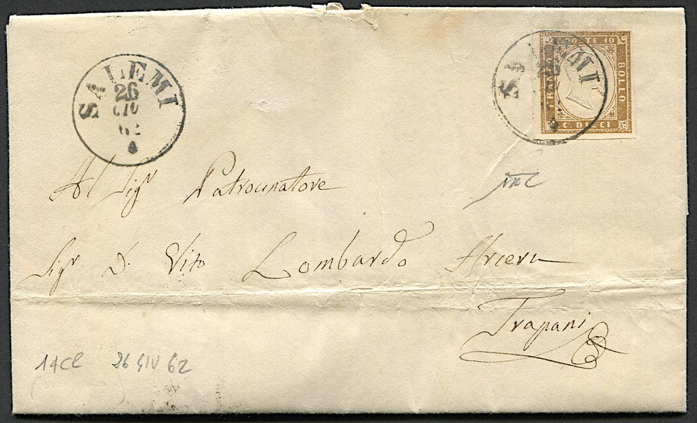 1862, Regno d’Italia, Sicilia, lettera da Salemi per Trapani del 26 giugno 1862