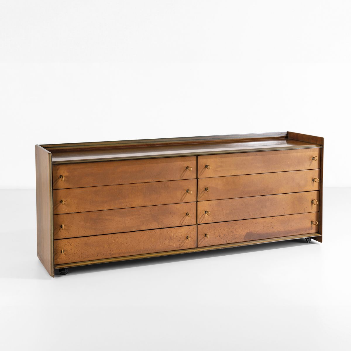 Struttura in legno in diverse essenze. Rivestimenti in pelle. Maniglie in cuoio.