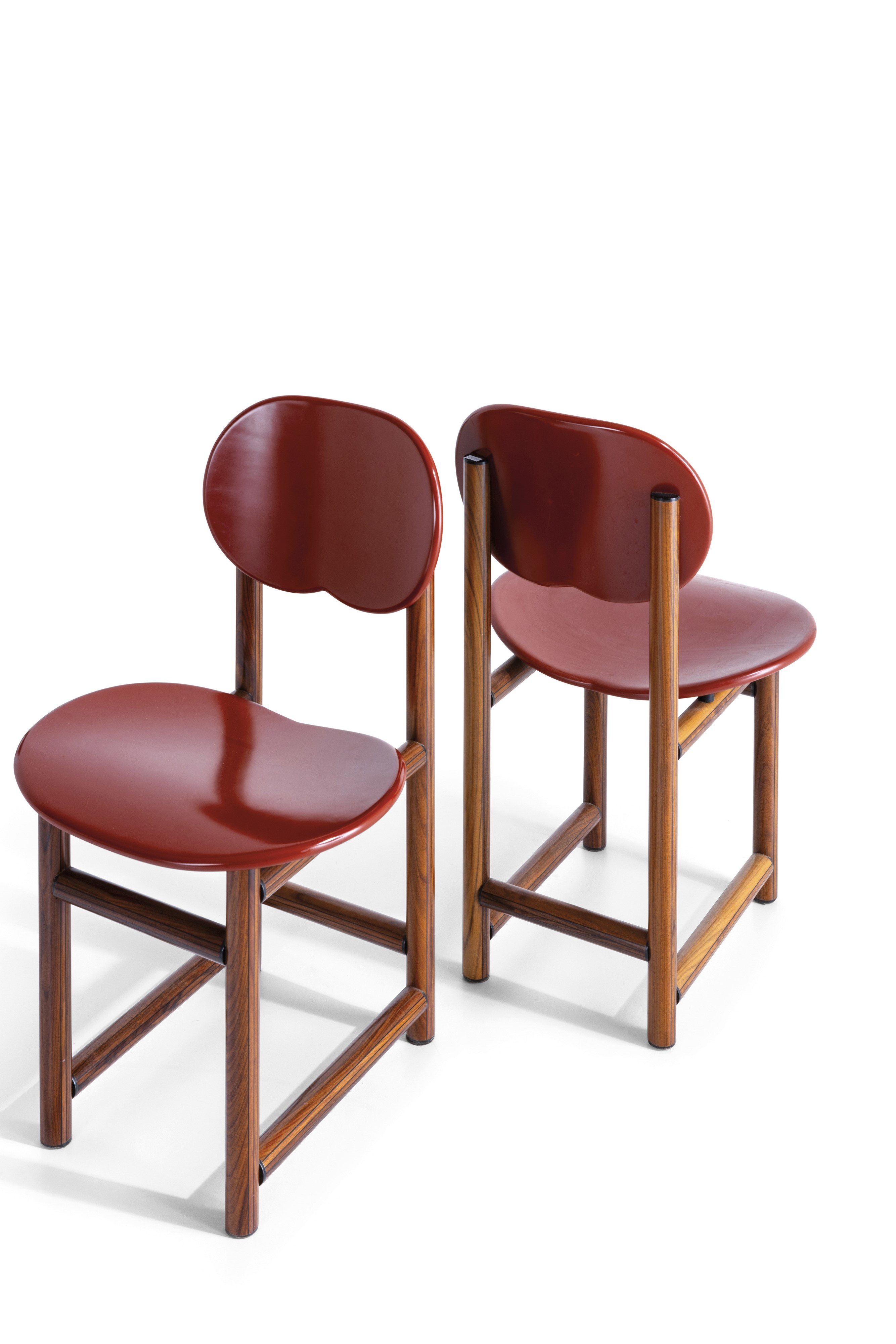 Struttura in legno e sedute in legno laccato.