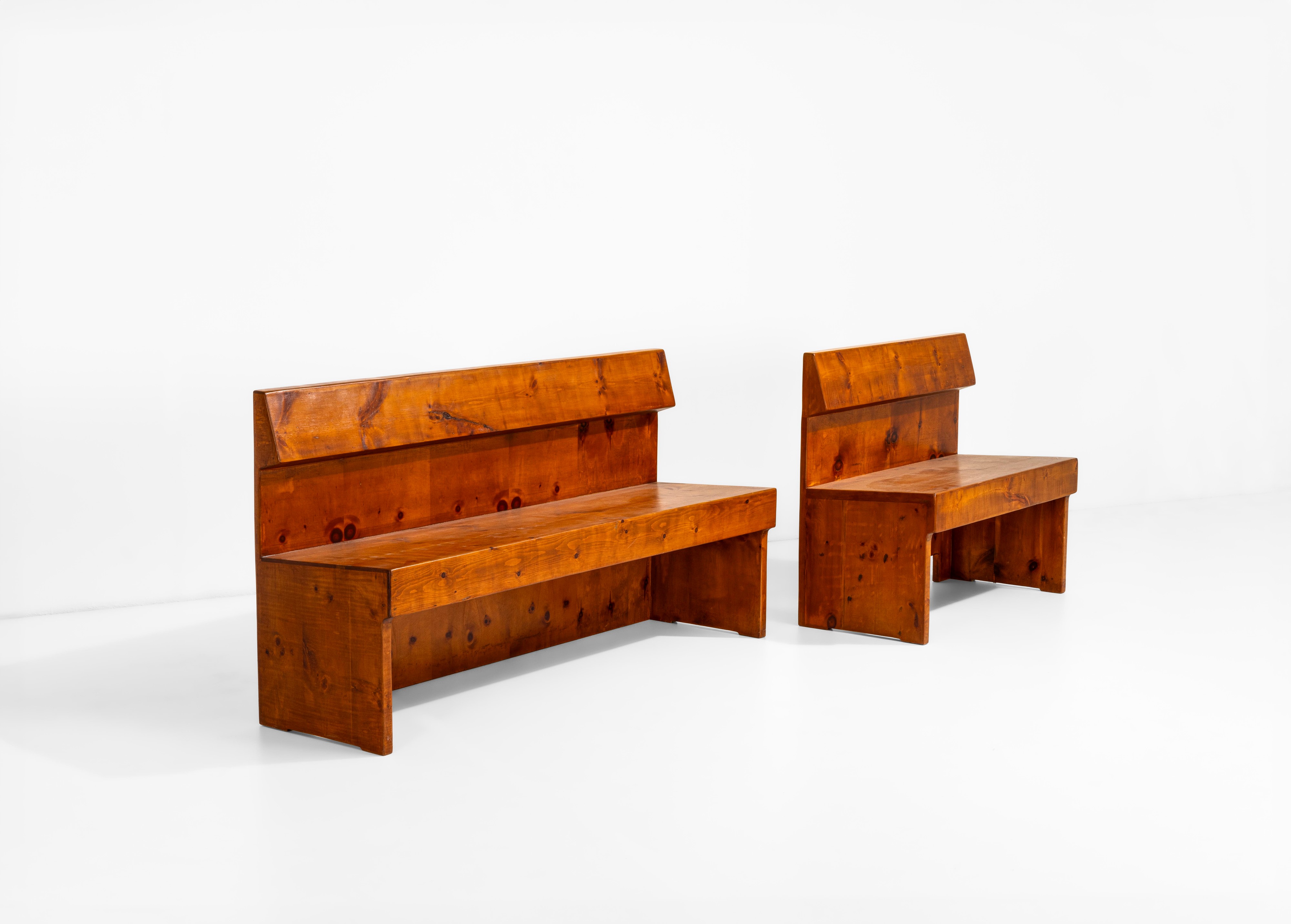 Panca grande: cm 161x47x85; Panca piccola: cm 96x47x85; Tavolo: cm 130x80x76.