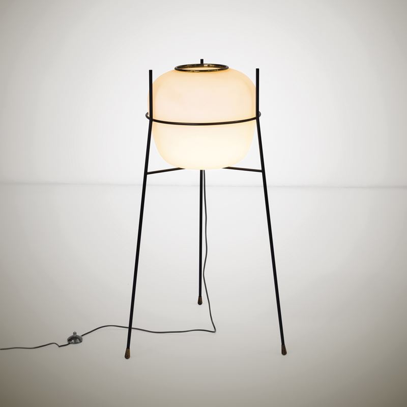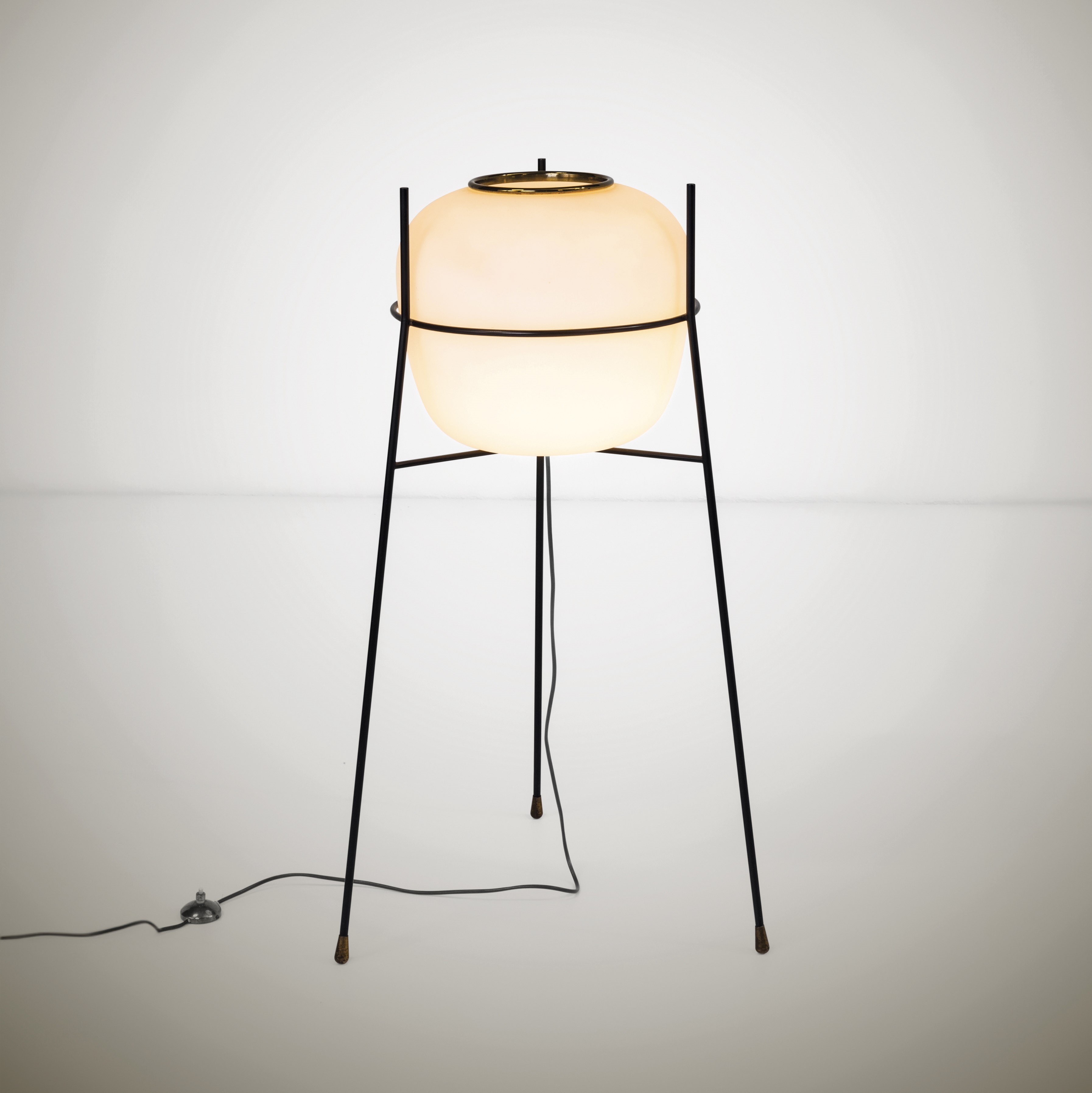 Struttura in metallo laccato e ottone. Diffusore in vetro opalino.