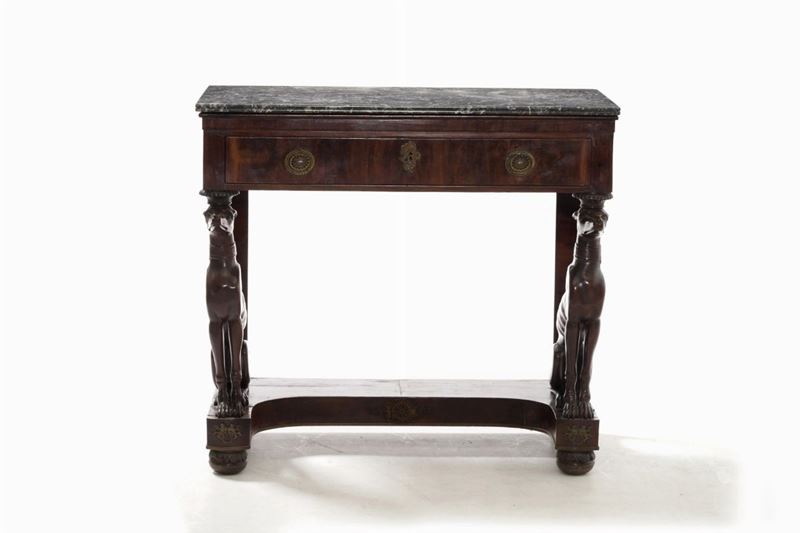 gambe anteriori a levrieri a tutto tondo, un cassetto nella fascia, piano in marmo