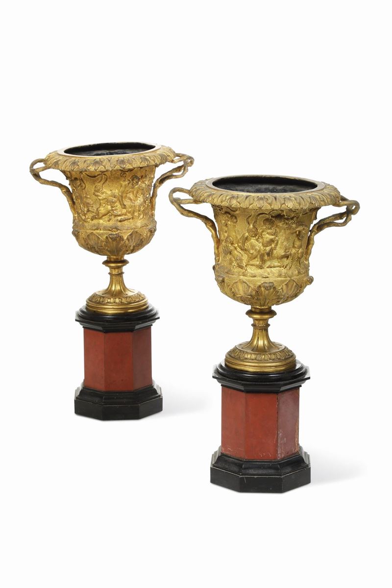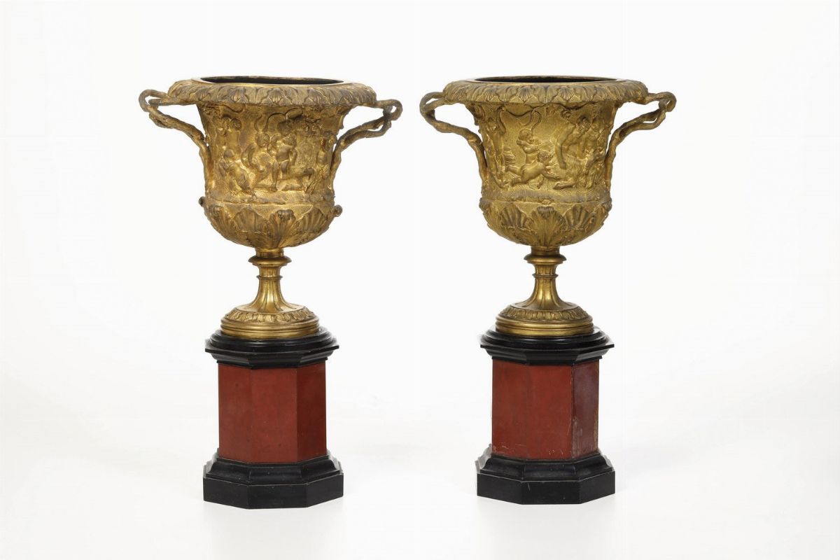 Coppia di vasi a cratere. Francia, XIX secolo, probabile manifattura Barbedienne