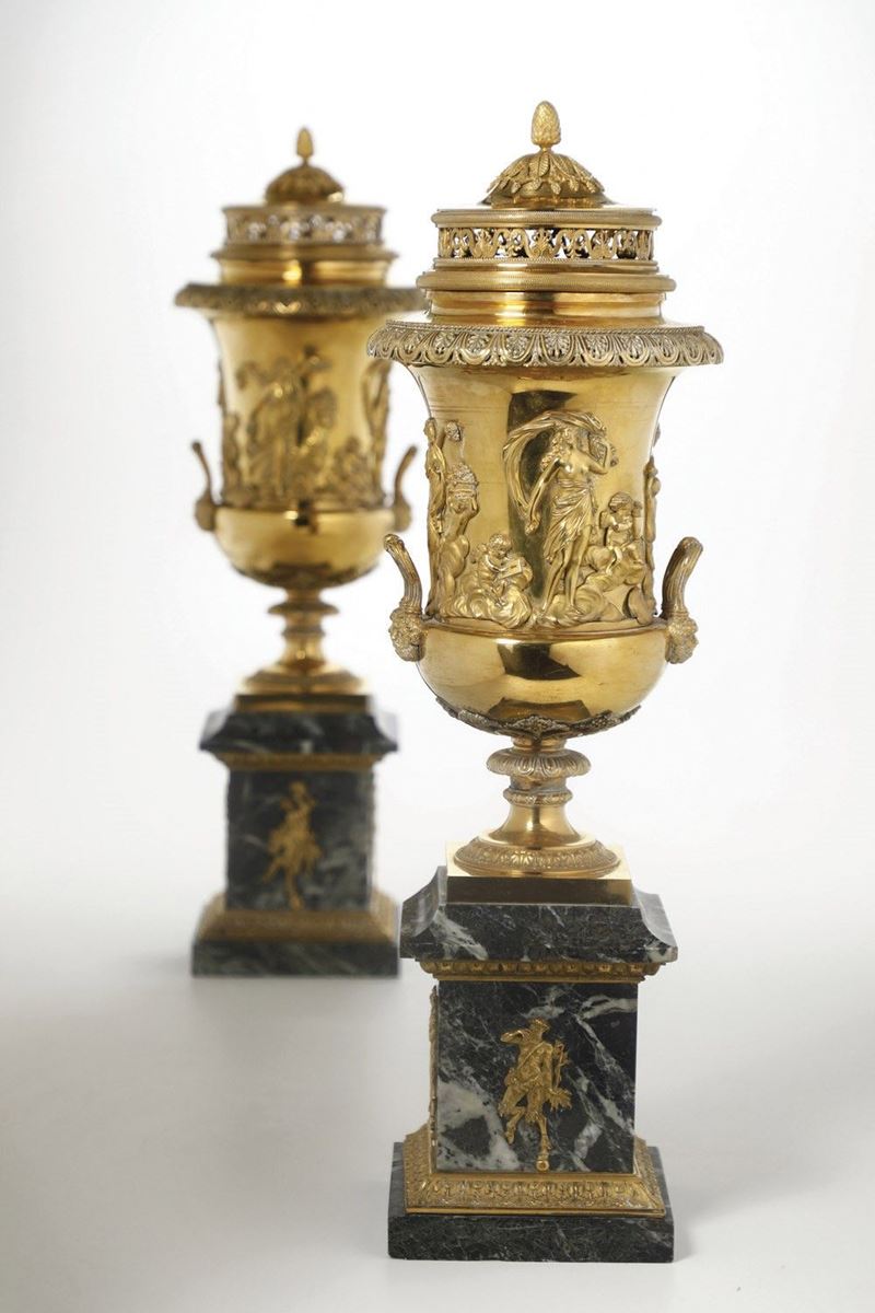Imponente coppia di bruciaprofumi. Manifattura del XIX-XX secolo