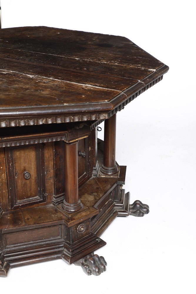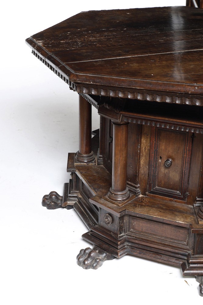 Tavolo da biblioteca in noce di gusto rinascimentale. Italia centrale