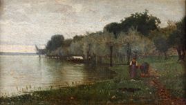 Veduta lacustre con figure