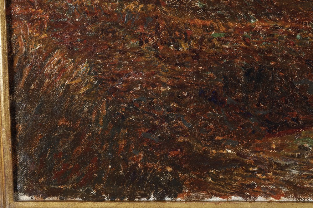 La Clementina è una località vicinissima a Volpedo caratterizzata dalla presenza di una cascina che qui infatti si vede sullo sfondo a sinistra. L’impostazione dell’opera è simile a ‘Novembre’ con un albero al centro della veduta che allarga i suoi rami a stabilire il termine superiore della scena.