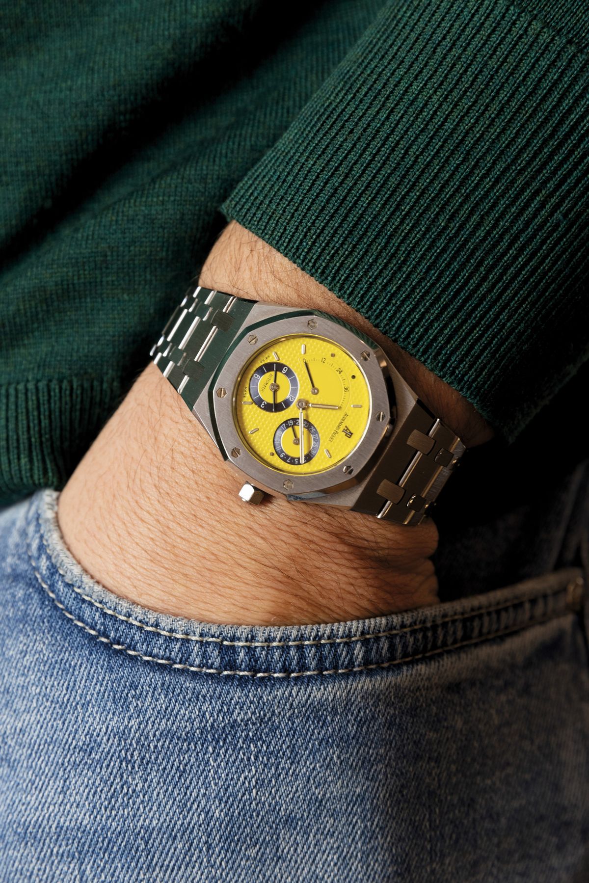 The particularity of this Royal Oak Dual Time lies in its bright yellow colour, which to the best of our knowledge has never been seen in this configuration. On the other hand, we are used to seeing these bright colours fitted by Audemars Piguet on sportier models such as the OffShore. Perhaps a prototype or perhaps an experiment for future models but undoubtedly a rarity that will not go unnoticed by the most discerning collectors.