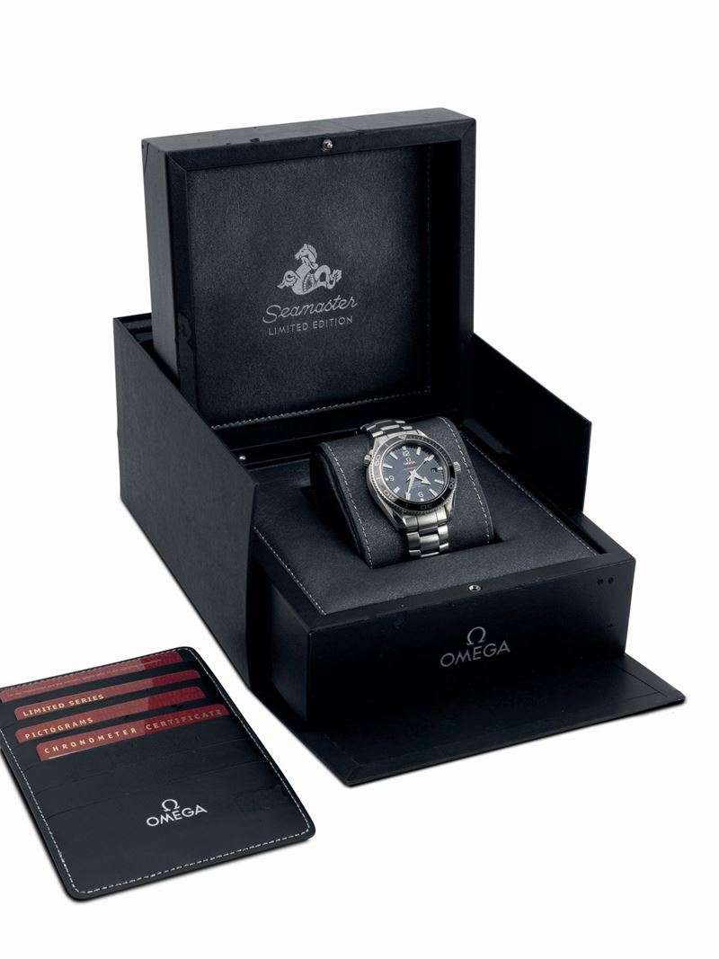 Iconic Seamaster Planet Ocean World Premier limited edition 1085/1948, co-axial automatic movement box and warranty
