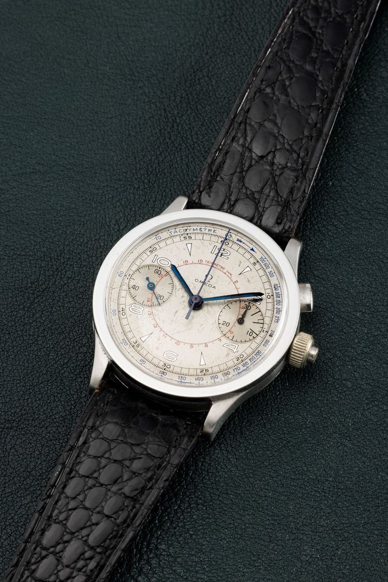 Rare late 1930s Omega CK 987 chronograph, oversized stainless steel first series case with crown reset, original dial with [..]