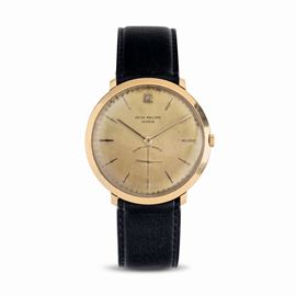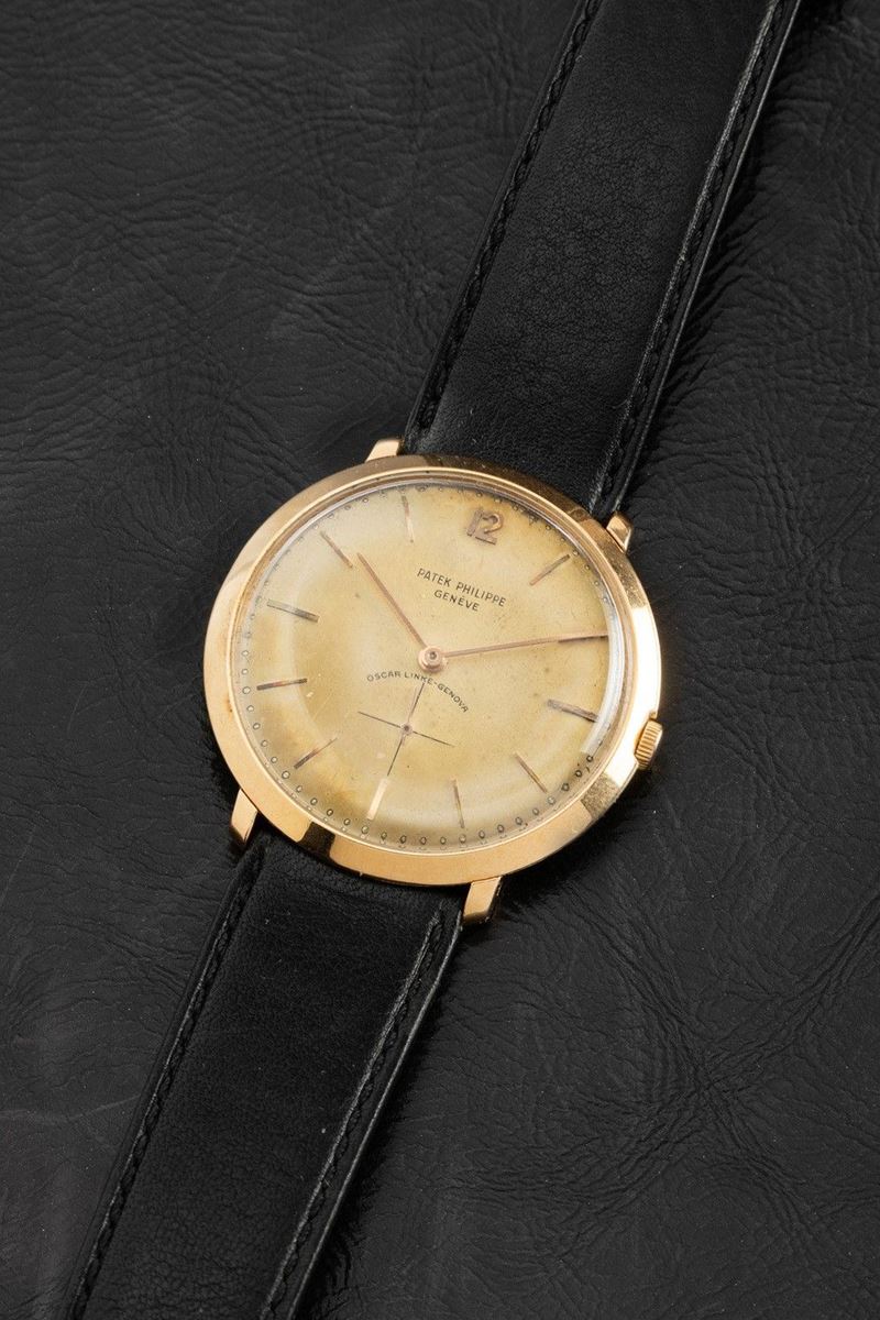 Elegant Calatrava double signed Oscar Linke in extra-flat 18k rose gold, hand-wound movement, silver dial with applied hour [..]