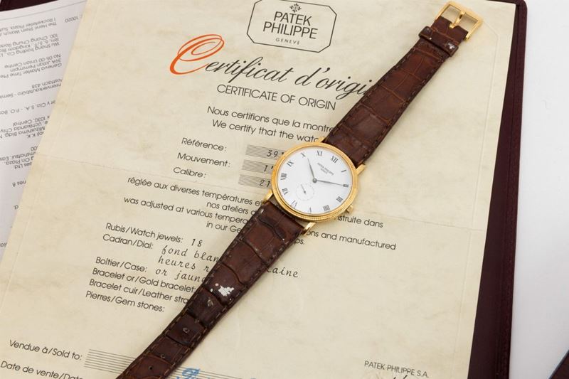 Fine and elegant, Calatrava Clos de Paris wristwatch with hand winding in 18-carat yellow gold, reference 3919, accompanied [..]