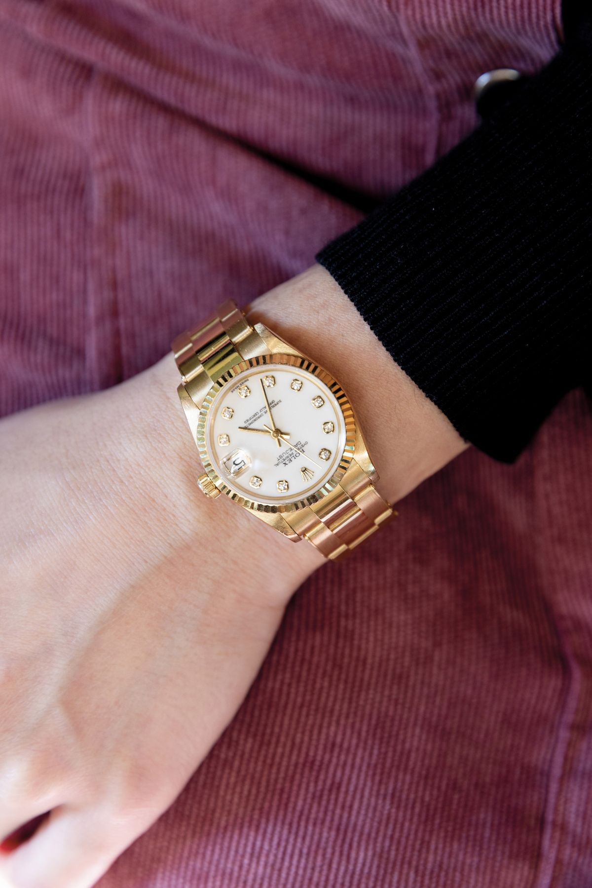 Fine and elegant Datejust ref 68278, Opal dial with diamond markers, 18k yellow gold riveted case and bracelet accompanied [..]