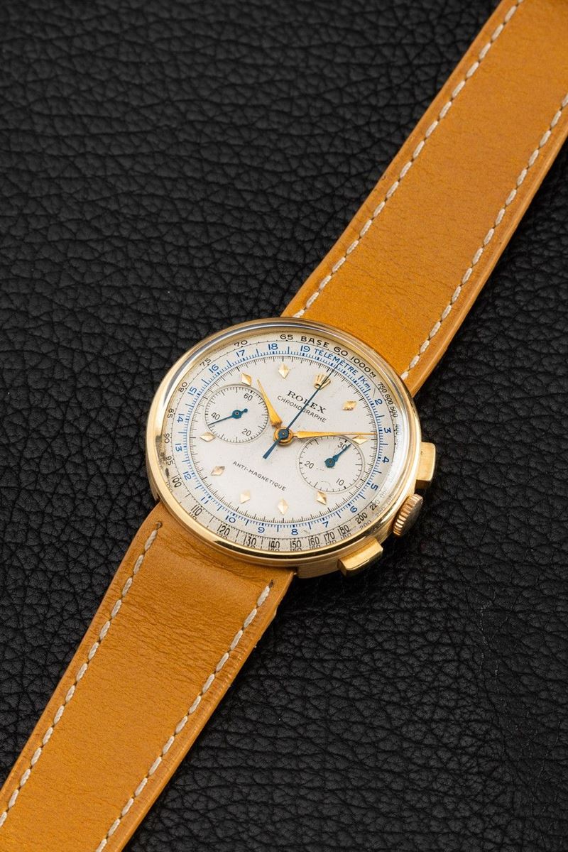 Launched in 1938, the Reference 3233 was only produced for a very few years, until 1941. Certainly one of the rarest Rolex chronographs ever made. Thanks to its simple and unmistakable shape, the Reference 3233 is nicknamed "Coin" by collectors. Preserved in excellent condition, this specific timepiece can be a rare opportunity to add a watch of unmistakable and particularly elegant design to your collection.