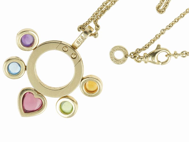 "Allegra" gem-set and gold pendant. Signed Bulgari