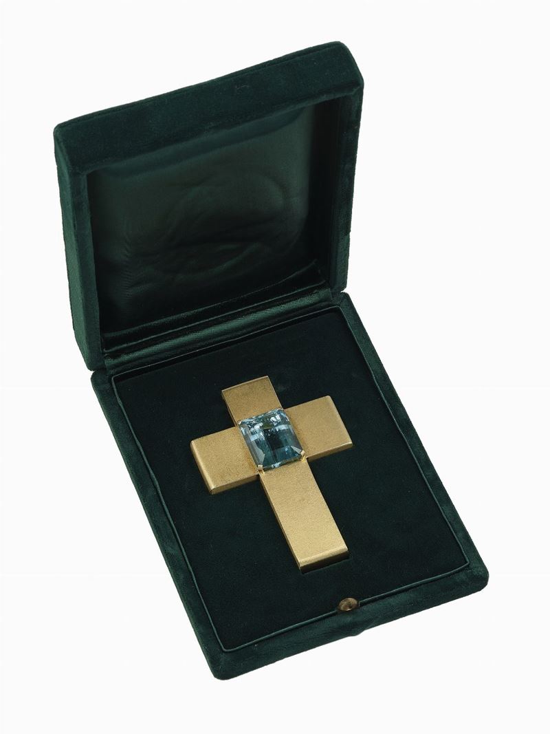 Aquamarine and gold pendant. Signed Gai Mattiolo. Fitted Case