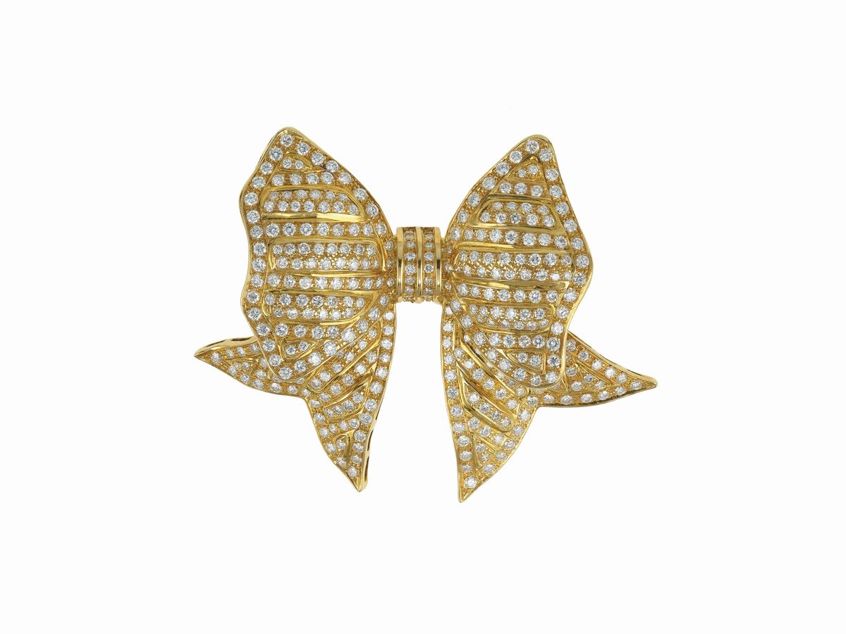 Diamond and gold bow brooch